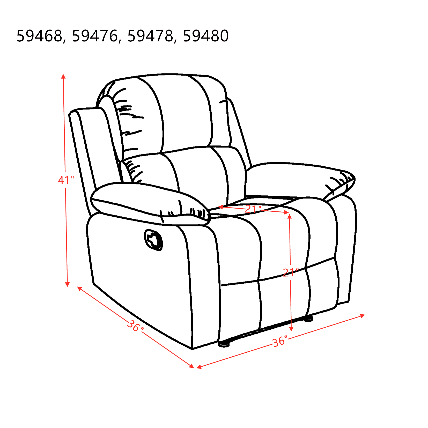 •KD Back, Motion Reclining Mechanism• Tight Back & Seat Cushion• Seat: w/Pocket Coil• Arm: Pillow Top• External Latch Handle (No Power)• (No Glider/No Rocker)