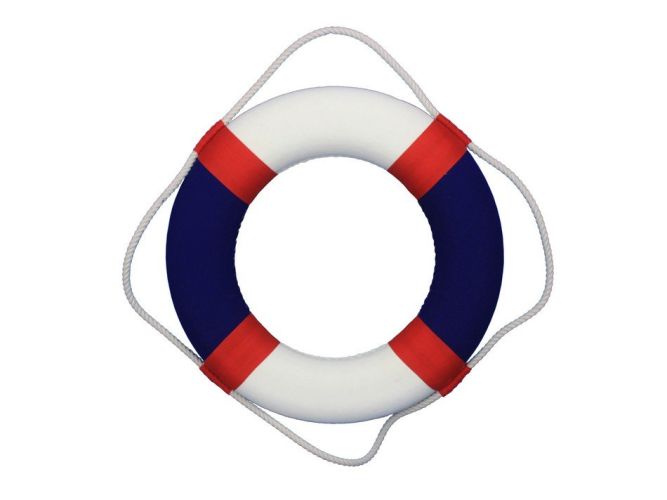 This Decorative American Lifering 20" will compliment any beach home perfectly. Combining patriotic colors of red, white and blue, this hand-stitched nautical lifering will light up your beach living room, beach wedding decorations or beach themed party.  Our life ring decorations are the perfect choice for any beach setting.